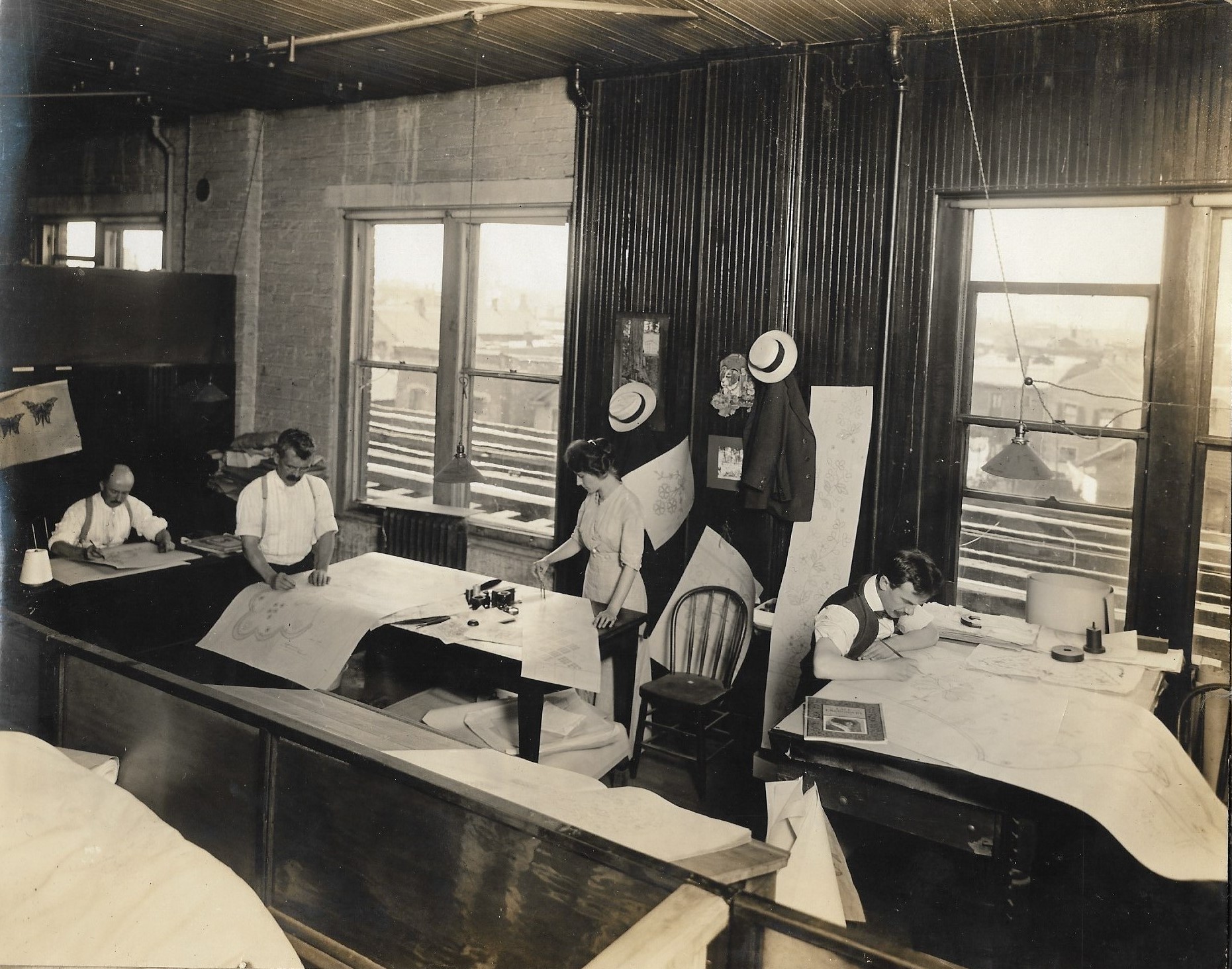 This is a rare glimpse at the early days of The Chicago Embroidery Company. Founded as the first embroidery company in Chicago, the firm crafted and manufactured Swiss Embroidery products which were popular at the time for home decorations, clothing, and other accessories. These photos capture what life was like in a Chicago factory around the years of 1900-1910.